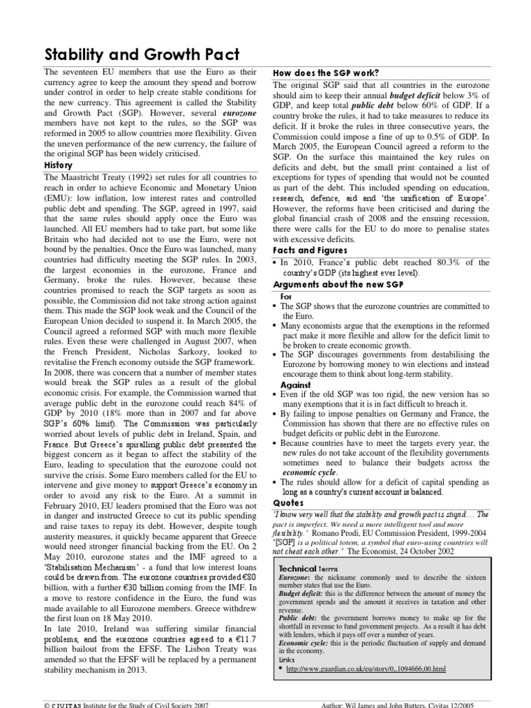 EC 10 SGP pareri pro si contra reformarea SGP Stability And Growth