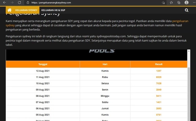 Seperti yang anda lihat pada tabel data sdy live yang ada di atas bahwa angkanya kami ambil langsung dari situs resminya yaitu Sydneypoolstoday.com dan akan diupdate setiap harinya pada jam 13 : 50 WIB, sedikit informasi tambahan kepada yang sedang mencari hasil result syd hari ini tercepat maka bisa langsung membaca halaman Keluaran Sydney Hari Ini Live 6D Tercepat - SDY Pools. Situs Togel Sydney Keluaran Tercepat Resmi & Terpercaya 2023 Togel Sydney saat ini menjadi salah satu situs judi online terpopuler di Indonesia. Para pemain togel di tanah air sudah menjadi bettor togel online dan sering mencari bandar togel terpercaya untuk bertaruh nomor togel sydney.